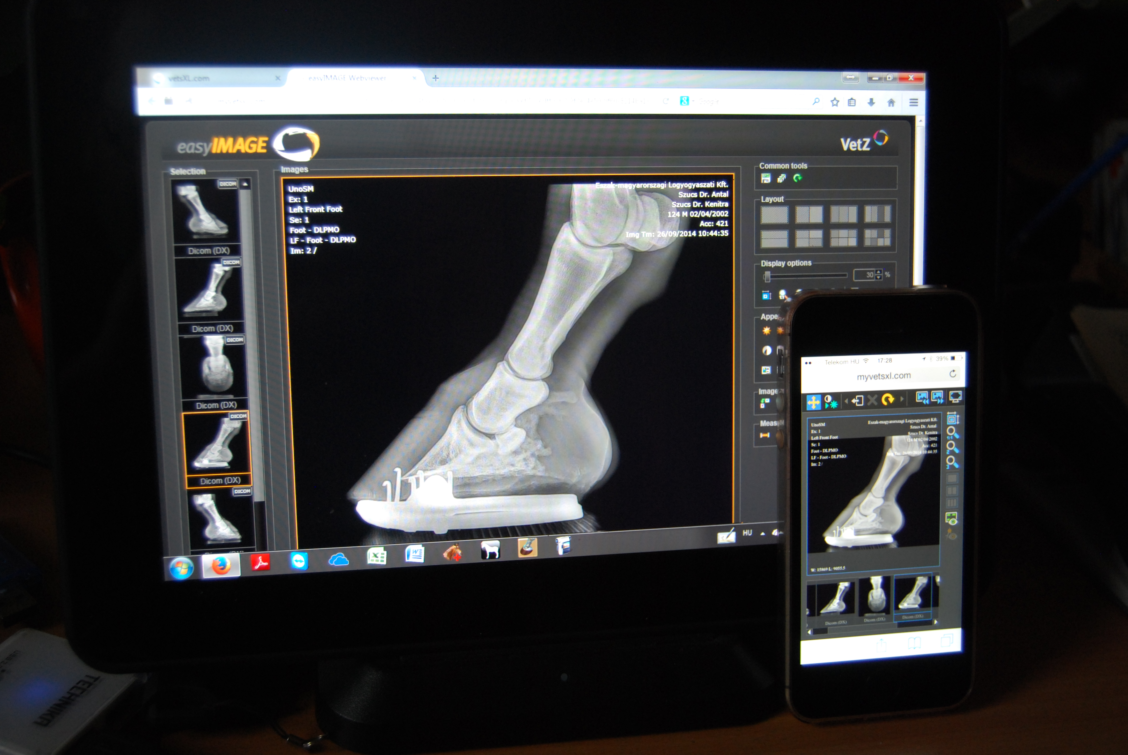 A készülék a Ló Tréning- és Rehabilitációs Központ számítógéphálózatához tökéletesen illeszkedik, a képek tárolása cégünk szerverén valamint felhő alapú adattárolóban egyidejűleg történik, a röntgenképek küldése egyszerű, gyors és biztonságos. A technológiát immár másfél éve használjuk teljes megelégedésünkre, ezen idő alatt több ezer röntgenképet készítettünk, kitanultuk a hardver és a szoftver használatának minden csínját-bínját. A szoftver előnye, hogy a szervereken tárolt adatbázisba nemcsak a vizsgáló helyiségekben található munkaállomásokról, hanem távoli hozzáféréssel akár tableten, akár mobiltelefonon bárhonnan bele tudunk tekinteni, képeket tudunk értékelni illetve küldeni!